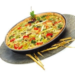 Gemüse-Haferflockenquiche mit Ziegenjoghurt-Frühlingskräuter-Dip