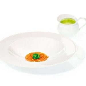 Brokkolischaumsuppe mit gebeiztem Lachs und gerösteten Pinienkernen