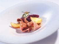 Die vier Truthahnschnitzel zwischen einer Klarsichtfolie dünn klopfen und in einer heißen Pfanne kurz braten.
